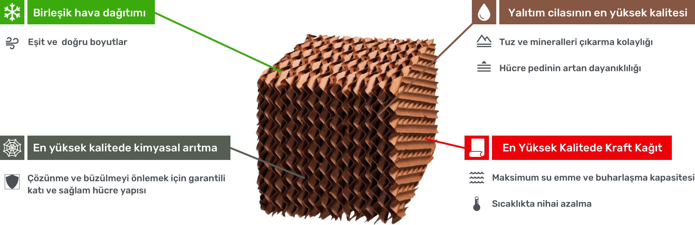 Tabreed soğutma panelleri, arıkovanını andıran bir yapı oluşturacak şekilde birbirine ters olarak yerleştirilmiş, selülozdan yapılmış ve hava akışına izin veren oluklu kağıtlardan oluşmaktadır.